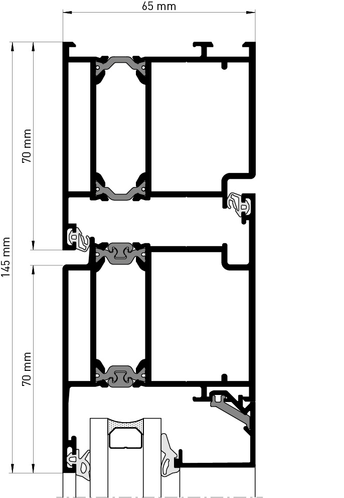 Dveřní systém heroal D 65 nabízí hospodárná řešení pro dveře otevírající se dovnitř a dveře otevírající se ven včetně automatických a únikových dveří. Tříkomorové profily nabízejí maximální systémovou bezpečnost se ověřenými systémovými kováními v kombinaci se systémovými komponentami heroal. Dveřní systém heroal D 65 firmy heroal splňuje nejvyšší nároky s ohledem na komfort ovládání a zabránění vloupání.