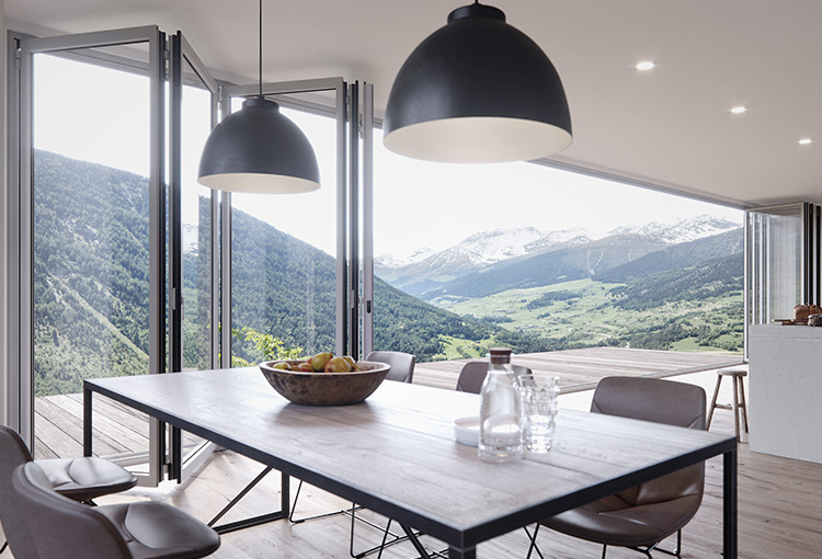 Vereinen Sie Design, Funktionalität und Sicherheit bis RC 3 mit den Glas-Faltwandsystemen von Solarlux.