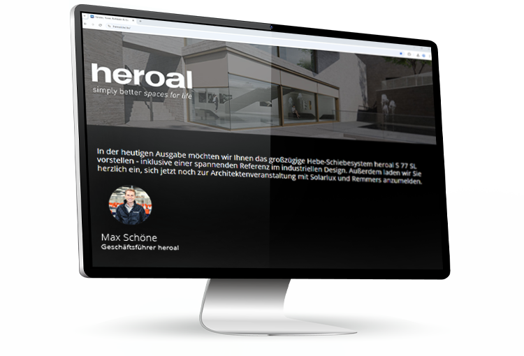 Um eine allumfassende Beratung gewährleisten zu können, sind heroal Architektenberater in ganz Deutschland tätig und beraten Sie, bei Bedarf, direkt am Ort Ihres Bauprojektes. Der technische Support unterstützt Sie in allen Fragen rund um Fenster, Türen und Fassaden sowie Rollladen, Sonnenschutz und Rolltore. Sie sind neu bei heroal? Nehmen Sie noch heute Kontakt zu uns auf!