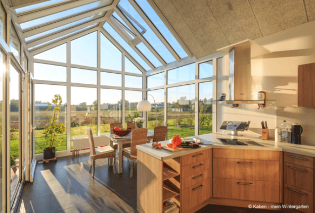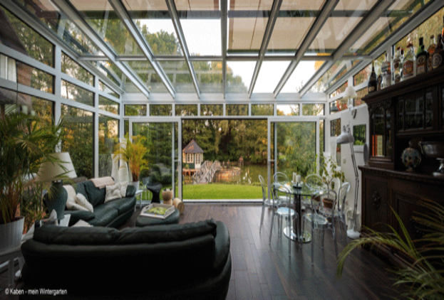 Wintergartensystem - Der Wintergarten heroal C 50 WG überzeugt durch seine moderne Architektur und höchste Gestaltungsfreiheit. Auf Wunsch entsteht ein großzügiger Raum, der mit einer Grundfläche von bis zu 4,2 x 5 m ohne Mittelstütze auskommt.