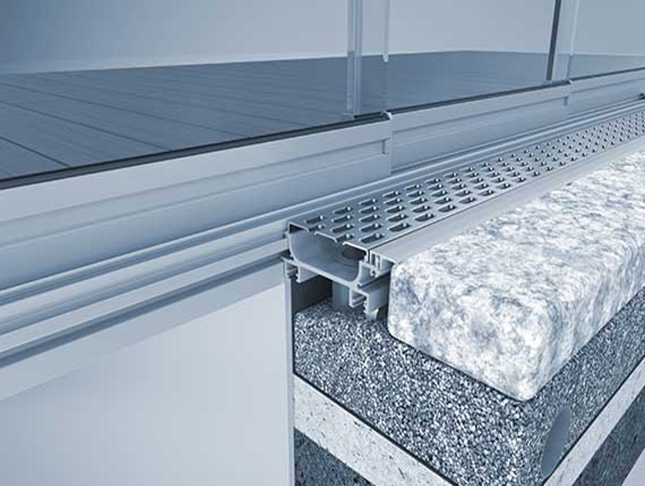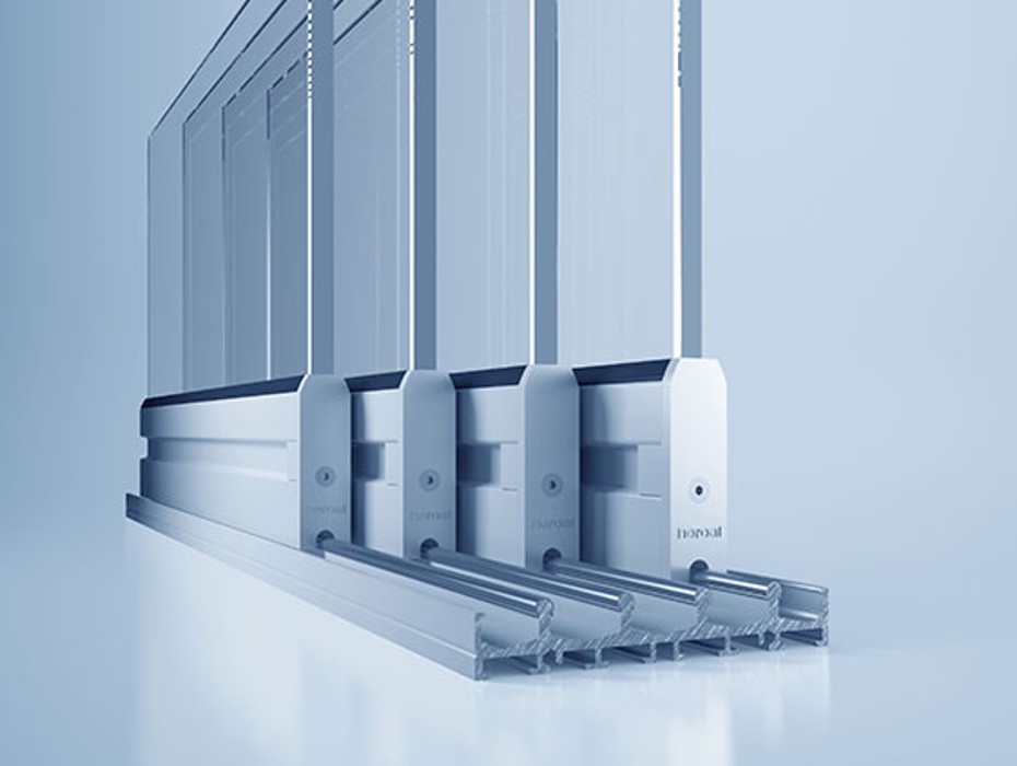 The moving glass wall heroal S 20 C can easily be integrated in outdoor areas, but also offers many options to create appealing interior solutions. Since the weight of the moving glass wall is carried by element carriers running in guide rails fixed to the floor, the sliding system heroal S 20 C is especially suited for suspended ceilings.