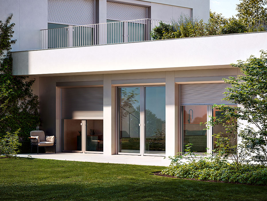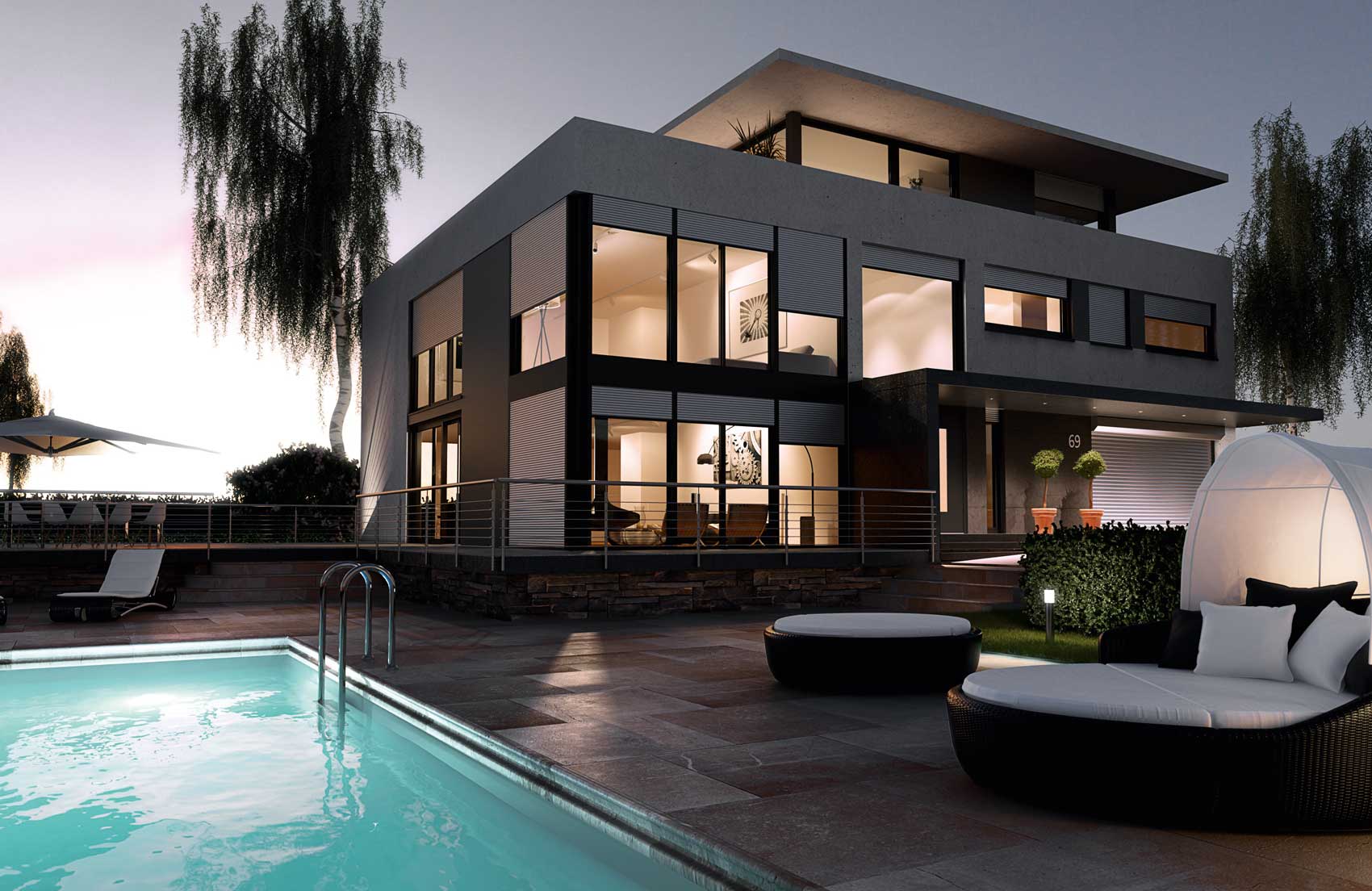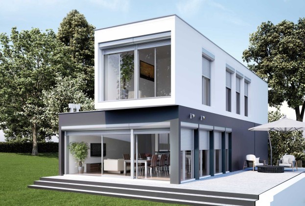 heroal roller shutters save heating energy and serve as passive air conditioners. In cold nights, the loss of energy is considerably reduced by the air cushion between window and roller shutter. With closed roller shutters, up to 44 % of energy can be saved at night. In the summer, automatically controlled roller shutters keep the inside temperature cool and enjoyable, and make switching on the air conditioning unnecessary. In addition, completely surface-mounted shutter boxes do not create any cavities and hence no thermal bridges, considerably improving the heat insulation of the building. Tightly sealing end strips ensure the heat-insulating and energy cost-saving function of heroal roller shutters.