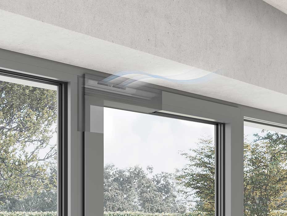 heroal window rebate ventilations for the window systems heroal W 72 and heroal W 77 ensure a user-independent protection against moisture according to DIN 1946-6. This prevents the formation of mould inside the room and ensures the flow of fresh air, which might, for example, be needed for fans. A rebate ventilation is almost invisibly inserted into the internal seal of the window, and, with the window closed, can neither be seen from the inside nor outside. heroal window rebate ventilations do not require electricity. The air streams in automatically, because of the different pressure inside the building. In order to avoid unpleasant draught, the ventilation flap closes automatically in strong winds.
