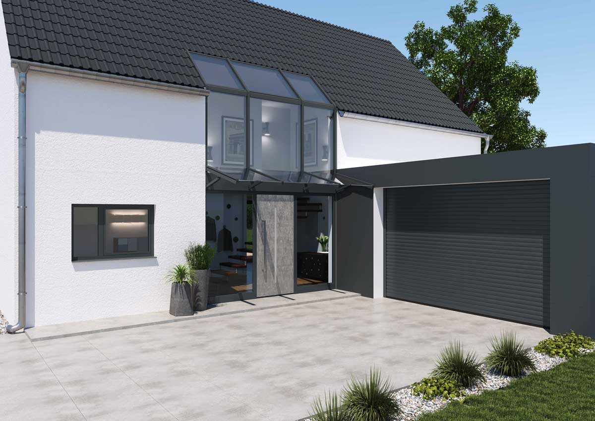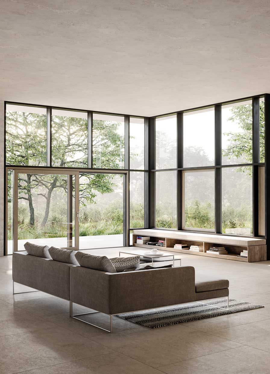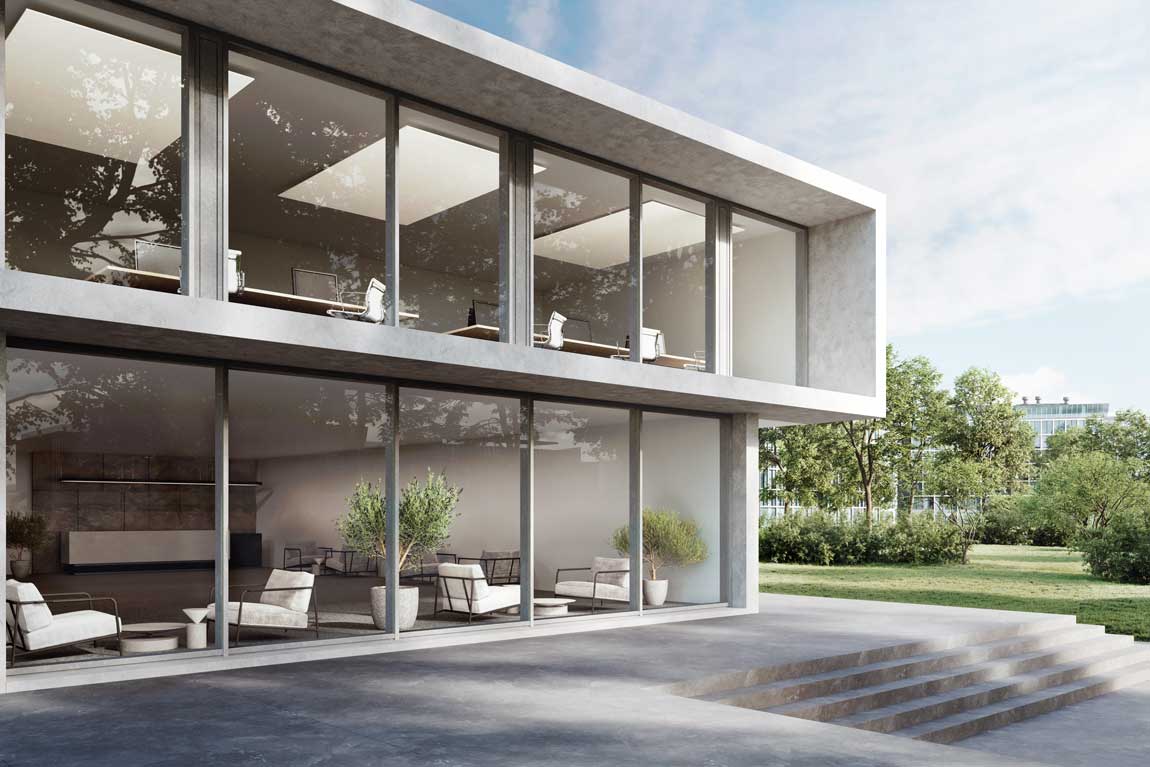 heroal Surface Design makes it possible to create aluminium windows, doors, curtain walls or patio roofs with wood, concrete or rust looks. After having been heroal hwr powder-coated, the profiles are wrapped in a transfer foil with sublimation ink. Extreme heat creates a vacuum, and the ink cures into the powder coating. Then the foil is removed, revealing the high-quality surface look. The bonding of heroal SD and the hwr powder coating underneath is very strong. That way, heroal Surface Design (SD) provides for surfaces of excellent quality.
