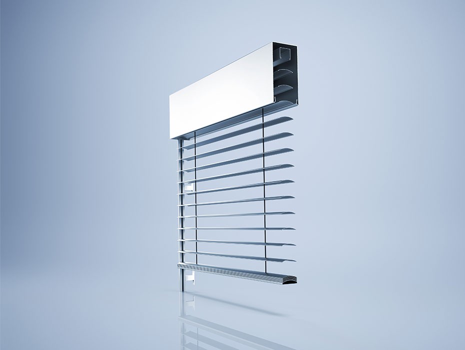 L'élément préfabriqué pour brise-soleil orientable heroal VB Free (Venetian Blind Free) est livré entièrement monté sur des rails de guidage porteurs et convient idéalement aux façades poteaux-traverses comme l'heroal C 50. heroal VB Free est utilisé là où une transmission de la charge est possible uniquement via les rails de guidage. Le brise-soleil autoportant convient non seulement pour les nouvelles constructions, mais aussi pour une installation ultérieure, car le caisson n'est pas fixé à la façade ou à la maçonnerie. Il est possible de choisir entre un cache à bord visible, un cache rond ou un profilé statique nu. Le brise-soleil est monté sur les montants de la façade ou sur la fenêtre via les rails de guidage. Les coulisses renforcées en aluminium extrudé sont posées sur des entretoises renforcées en aluminium. Il est possible de réaliser des éléments d'une hauteur de 4.500 mm et d'une largeur maximale de 5.000 mm ou d'une largeur minimale de 582 mm. La commande de l'heroal VB Free s'effectue par pression sur un bouton via une télécommande radio ou manuellement via un bouton dans le mur. De plus, le brise-soleil peut être intégré dans des systèmes Smart Home.