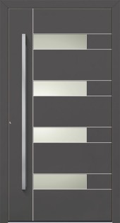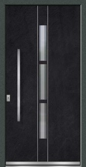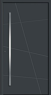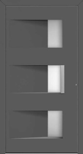 Une porte d'entrée se compose de divers éléments qui répondent à des aspects tant fonctionnels que visuels. Le cadre, qui ancre la porte dans la maçonnerie, et le profilé du vantail, qui en combinaison avec les charnières, les ferrures et les poignées permet d'ouvrir et de fermer la porte, sont les principaux responsables des aspects fonctionnels. En revanche, le panneau de la porte d'entrée, qui est fixé dans le profilé du vantail, assure non seulement la sécurité, l'insonorisation et des valeurs d'isolation optimales, mais il contribue également de manière significative à l'aspect de la porte d'entrée et façonne l'apparence de votre maison.