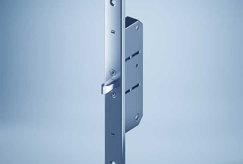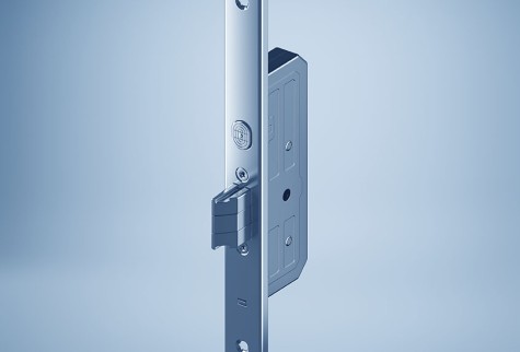 Traverse - La traverse verrouille ou déverrouille la porte lors de l’actionnement du cylindre, par exemple avec la clé ou une empreinte.