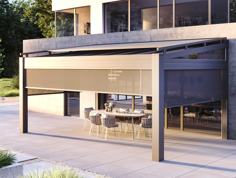 I sistemi di schermatura solare contribuiscono alla creazione di un ambiente residenziale e lavorativo sano, poiché l’esposizione ai raggi e al calore del sole sotto la pergola o nel giardino d’inverno può essere regolata secondo le proprie esigenze. I sistemi di schermatura solare, realizzati in alluminio riciclato e tessuti di alta qualità, sono inoltre resistenti alle intemperie e si distinguono per l’elevata stabilità del materiale e l’eccezionale durata nel tempo.