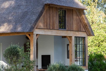 La casa unifamiliare riprende con coerenza il linguaggio di colori e di forme dell’ambiente e si ispira agli elementi della natura circostanti. Oltre alle eleganti e ampie porte scorrevoli heroal, l’architetto ha curato in modo particolare i dettagli delle finestre in alluminio heroal che sono state montate su un telaio di legno. Questa combinazione sfocia in uno dei tanti interessanti contrasti dell’edificio. Il risultato generale è invece una villa che dal tetto ricoperto di paglia, fino ai dettagli delle finestre, si inserisce armoniosamente nell’ambiente circostante. Grazie alle generose superfici vetrate e all’impiego dell’alluminio si ottiene una combinazione particolarmente riuscita di elementi tradizionali e moderni.
