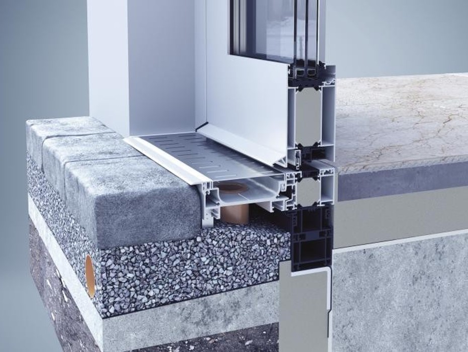 Per realizzare correttamente soglie senza barriere nella zona degli elementi della porta ed allo stesso tempo proteggere l’interno dai danni dell'umidità, è necessario attuare particolari misure. Una soluzione sicura è l'impiego del sistema di drenaggio, che convoglia senza riflussi l'acqua che cade sulle superfici. Per la scelta del corretto drenaggio, un fattore importante, oltre alla quantità di pioggia attesa, è anche la realizzazione del rivestimento esterno, per pianificare il drenaggio delle superfici necessario allo scarico senza problemi dell'acqua.