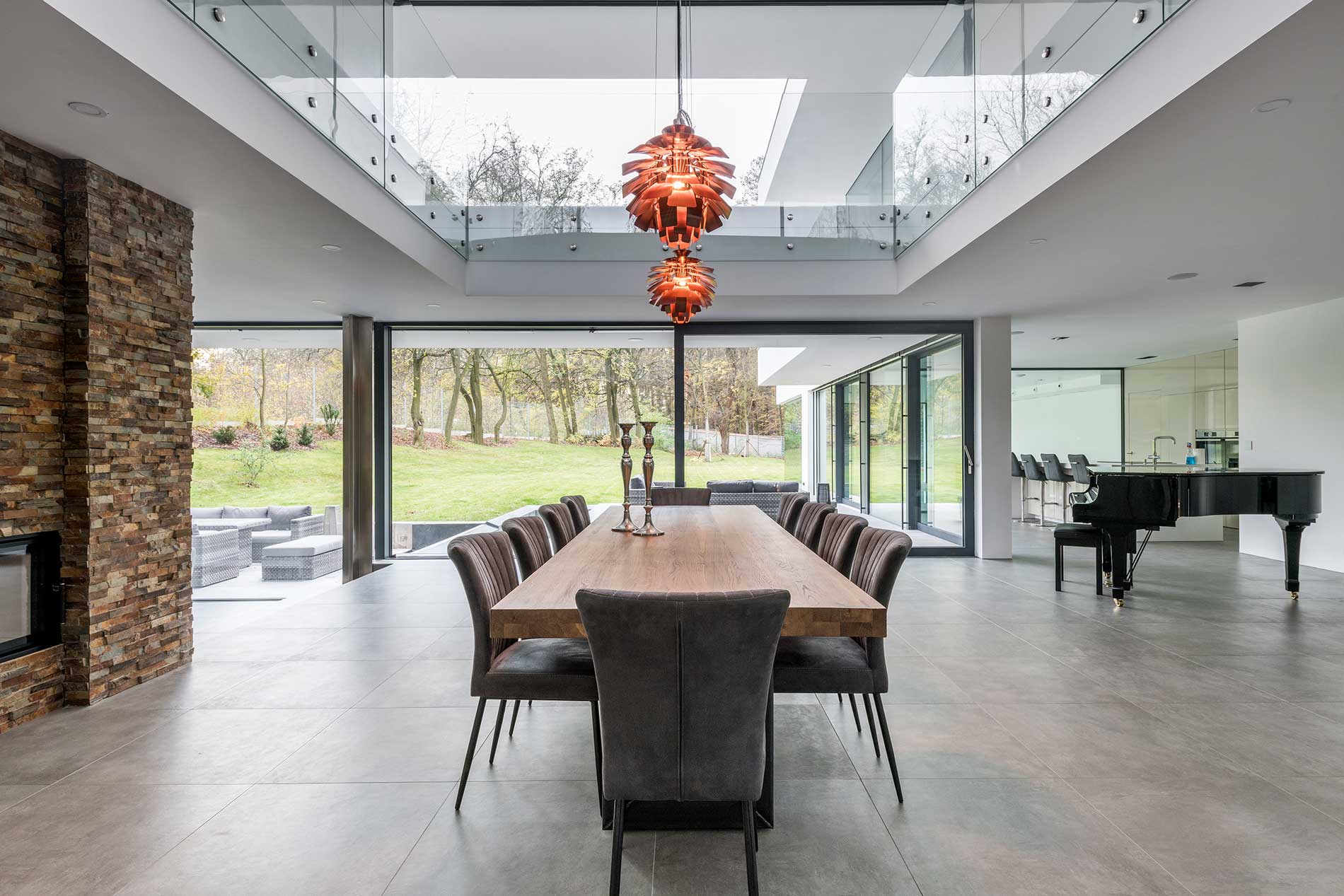 Ruimtes overspoeld met natuurlijk licht zijn helder en uitnodigend. Panoramaraam zien er niet alleen van buiten aantrekkelijk uit: de grote ramen zorgen ook voor een vriendelijke woonsfeer, openen de ruimte en zorgen voor een vrij uitzicht. Met kamerhoge elementen vervagen de grenzen tussen binnen en buiten - de ruimte wordt optisch vergroot. Maximaliseer de lichtinval en transparantie in uw huis met aluminium ramen van heroal.