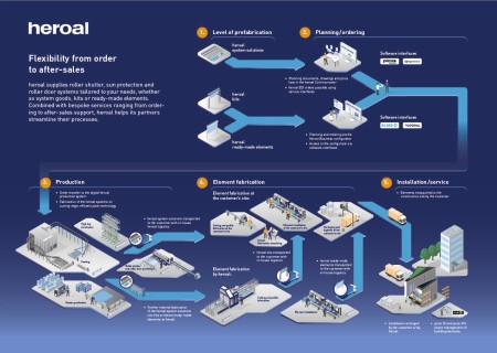 Firma heroal produkuje zestawy montażowe i gotowe elementy na nowoczesnym centrum obróbczym firmy Schirmer, będącej partnerem kooperacyjnym firmy, a także zajmuje się późniejszym (częściowym) montażem elementów. W przypadku towaru systemowego przykrój i obróbka są wykonywane przez partnerów branżowych heroal. Aby zwiększyć wydajność produkcji, heroal oferuje kompleksowe usługi doradcze w zakresie optymalizacji produkcji i procesów: od planowania przepływu materiałów i projektowania stanowisk roboczych, maszyn, narzędzi i urządzeń produkcyjnych, po optymalizację procesów produkcyjnych i cyfryzację zamówień. W ten sposób heroal identyfikuje wraz ze swoimi partnerami potencjały optymalizacji i opracowuje indywidualne rozwiązania dostosowane do konkretnych wymagań użytkowych.